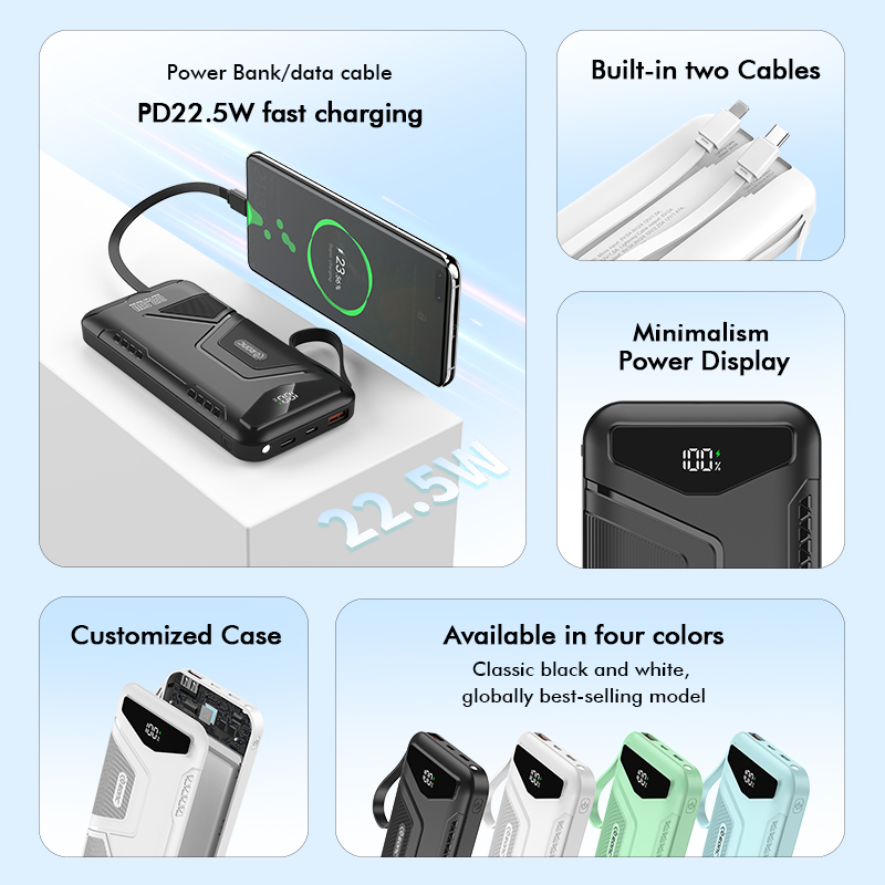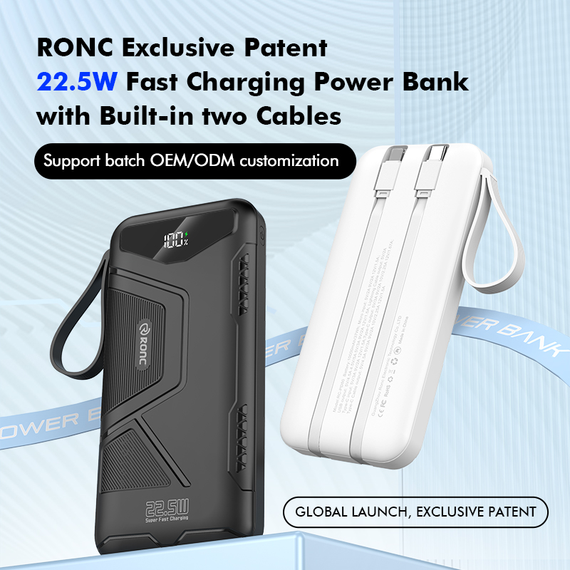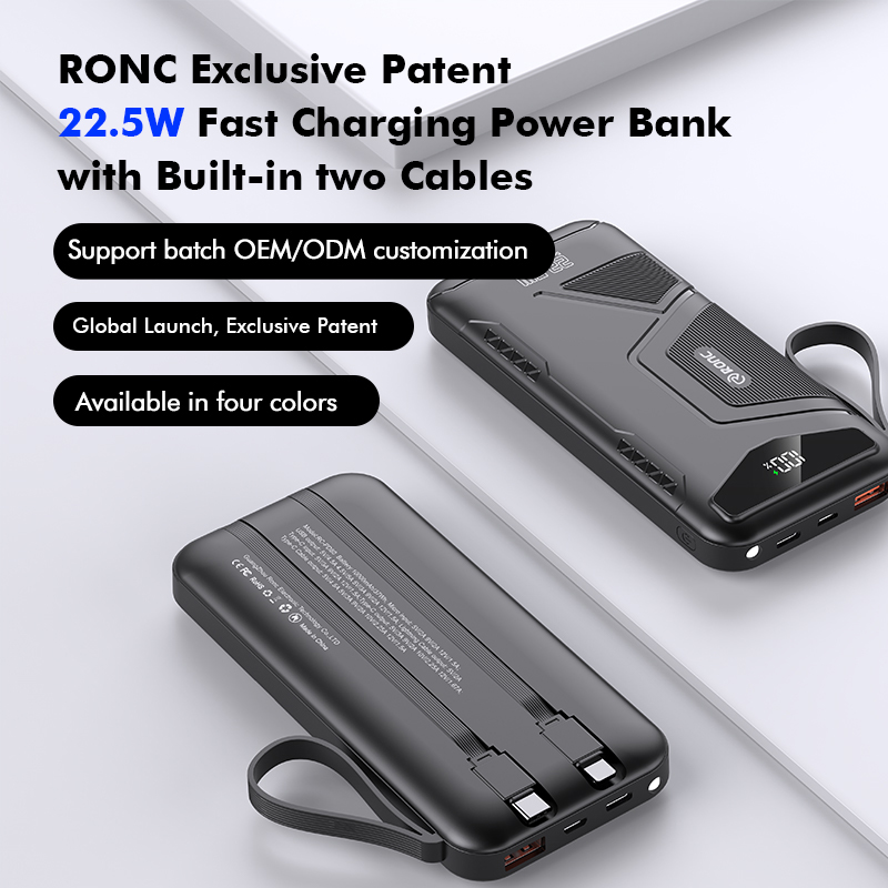 10,000/20,000/30,000mAh Exclusive Patent Power Bank with 22.5W/PD20W Super Fast Charging and Built-in 2 Cables,Customized Power Bank, RC-PD80