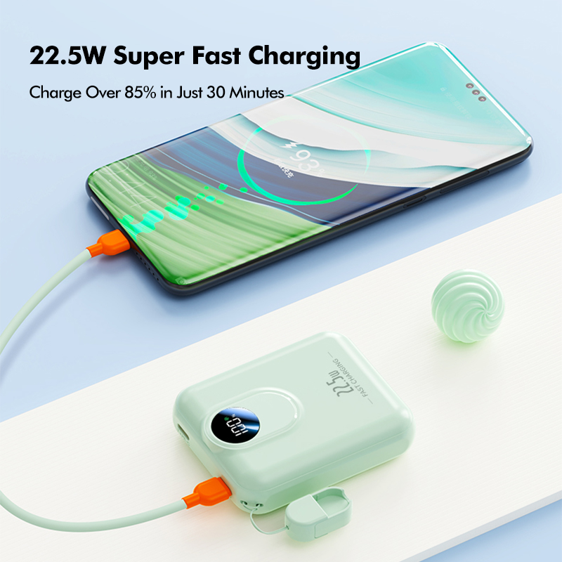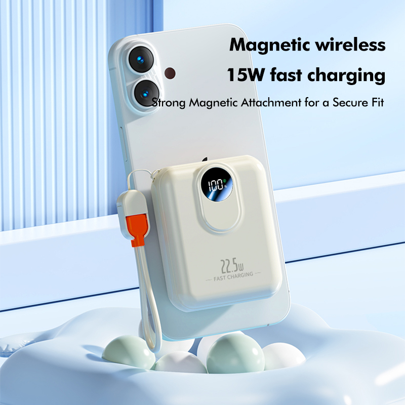 15W Mini Magnetic Wireless Power Bank—a compact and powerful charging solution designed for convenience. Featuring 15W true wireless fast charging, it ensures seamless power delivery without cables. The strong magnetic attachment keeps it securely in place, while its lightweight design makes it ultra-portable. The lanyard doubles as a data cable, adding extra functionality. With 22.5W super fast charging, it powers up Huawei Mate to 70% in 30 minutes and supports PD 20W two-way fast charging powerbank,10000mAh,power bank,22.5W,10000mah powerbank,mini power bank,10000mAh power bank,magnetic power bank,wireless power bank,5000mAhpowerbank,5000mah power bank,power banks,22.5W super fast charging,Fast Charging,22.5W super fast charge,22.5W fast charging,15W wireless charging,wireless charging,super fast charging,magnetic wireless charging,5000mAh,Magnetic,portable power bank