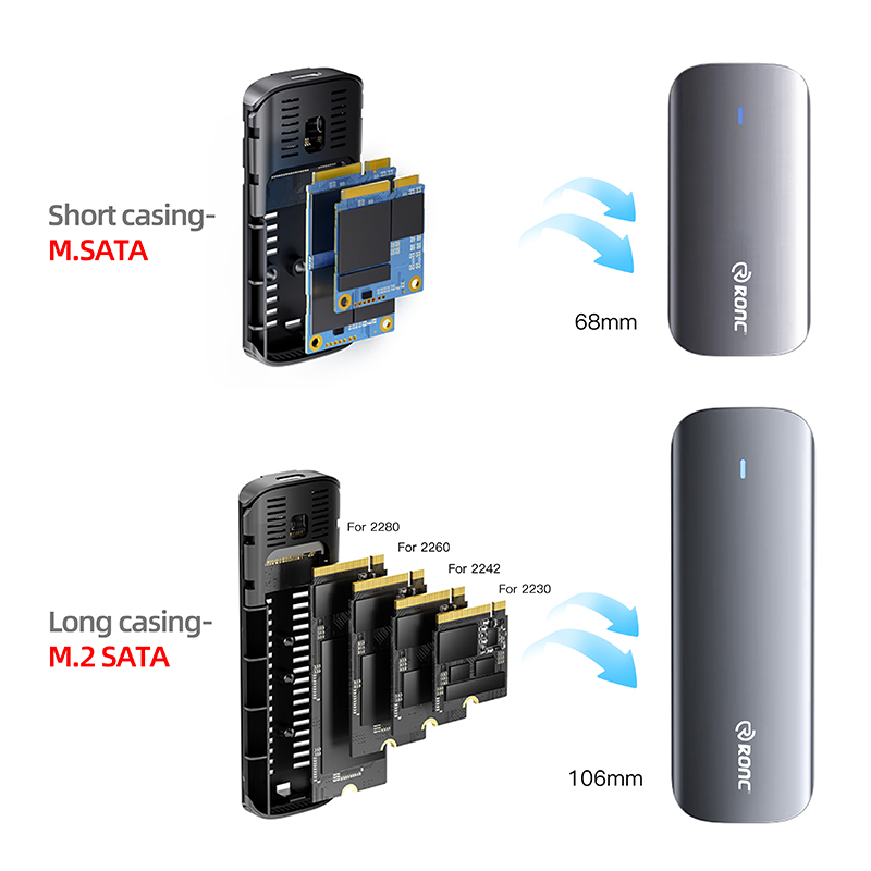 USB C 3.2 Gen 2 10Gbps to M.2 NVME PCIe; USB C 3.1 Gen 2 6Gbps to M.2 SATA PCIe